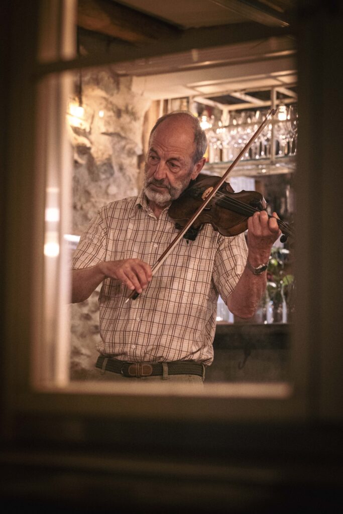 Er spielt Grossvaters deutsche Geige aus dem 19. Jahrhundert, seines Vaters Breton-Bratsche und eine Eastman-Mandoline.